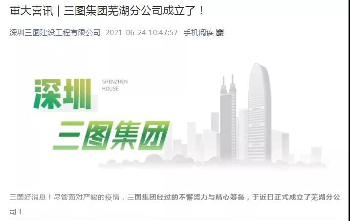 近日,深圳三圖建設工程有限公司(以下稱“三圖建設”)蕪湖、鄭州分公司相繼成立,全國戰略布局進一步擴大。