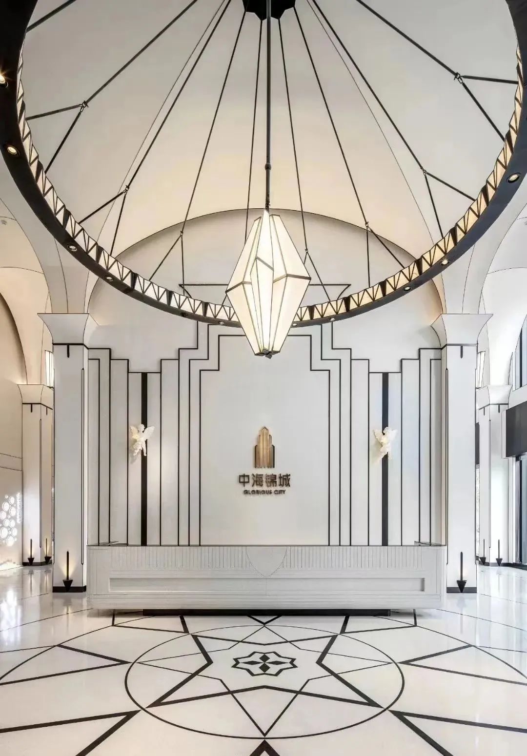 本項目由長春中海地產有限公司開發,深圳千里馬裝飾集團有限公司承接該項目示范區裝修工程,包含:G3#一單元、G5#一單元公區部位裝修工程及G3#-202、G5#-201\202交付樣板間精裝修工程及看房通道裝修工程。包括:戶內瓷磚鋪貼、天花吊頂制作安裝及全屋乳膠漆涂飾等工作;首層大堂、首層及二層電梯廳、過道、首層至二層樓梯間等位置的瓷磚粘貼、天花吊頂制作及鋼制品定制及安裝工作。