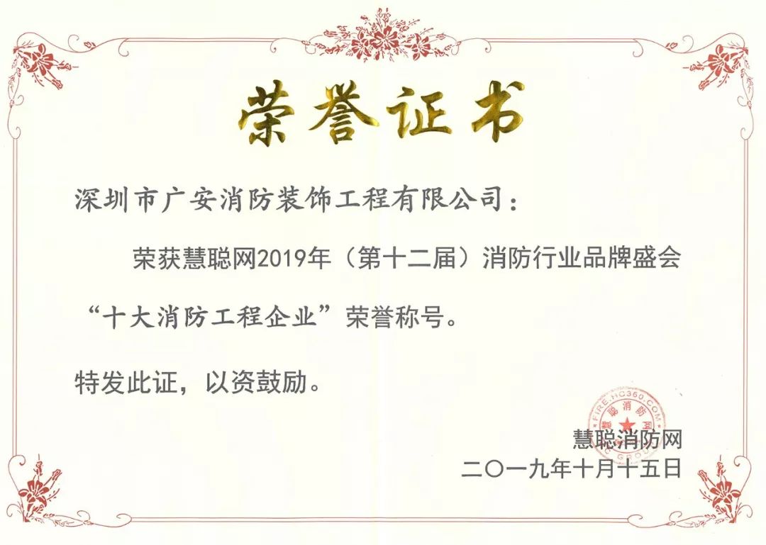 2019年10月15日,CFIC2019中國(guó)消防安全產(chǎn)業(yè)大會(huì)在北京隆重召開(kāi)。在大會(huì)的頒獎(jiǎng)盛典上, 深圳市廣安消防裝飾工程有限公司(以下稱(chēng)“廣安消防”)榮獲“2019年十大消防工程企業(yè)”稱(chēng)號(hào),廣安消防副總經(jīng)理謝祺先生當(dāng)選“十大消防工匠”。