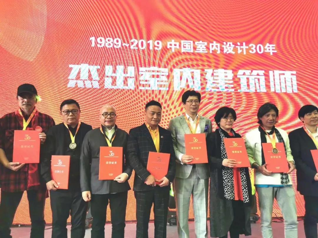 ▲ 楊邦勝(左三)領(lǐng)取“1989~2019全國杰出室內(nèi)建筑師”榮譽(yù)證書
