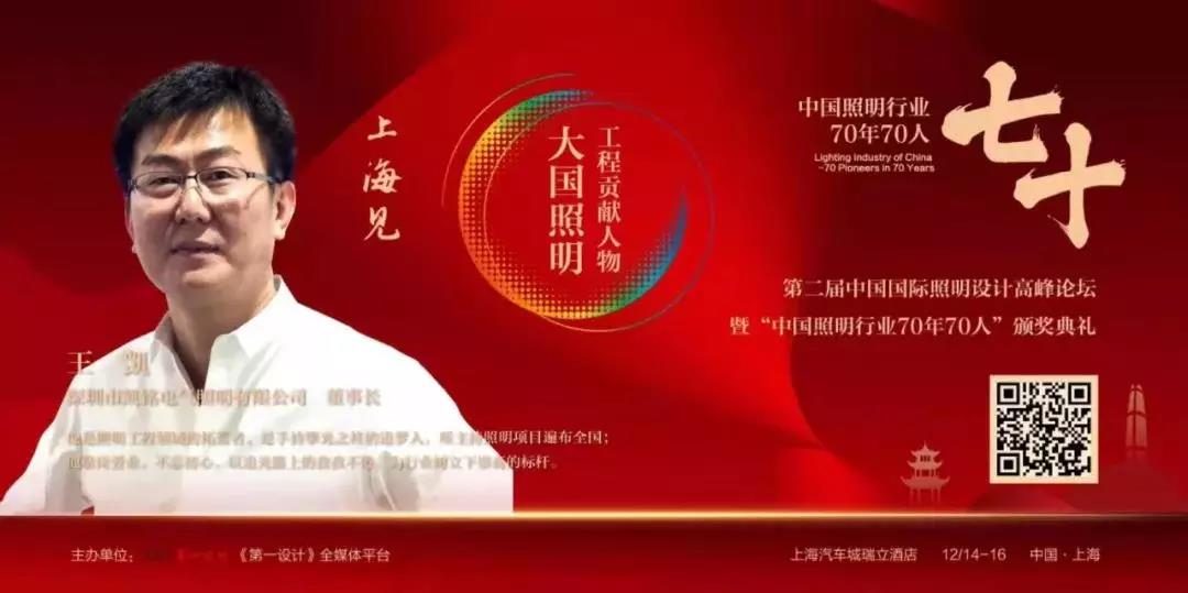 12月14—16日,第二屆中國國際照明設(shè)計(jì)高峰論壇暨中國照明行業(yè)70年70人頒獎(jiǎng)盛典在上海國際汽車城瑞立酒店隆重舉行。深圳市凱銘電氣照明有限公司(以下稱“凱銘照明”)董事長王凱入選中國照明行業(yè)70年70人,被授予“大國照明工程貢獻(xiàn)人物”稱號(hào)。
