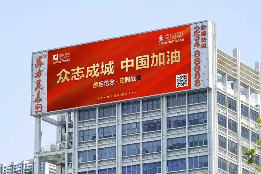 3月3日,深圳市建藝裝飾集團(tuán)股份有限公司(以下稱“建藝集團(tuán)”)積極響應(yīng)各級(jí)協(xié)會(huì)的號(hào)召,在深南路、濱河大道、梅林關(guān)、后海等日均逾百萬(wàn)次人車流量的標(biāo)志性交通樞紐地,以有效輻射深圳交通、客流主動(dòng)脈的宣傳廣度,參與推出深企抗疫相關(guān)主題公益廣告宣傳。