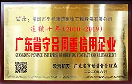 坐標裝飾:連續十年榮獲廣東省“守合同重信用”企業稱號