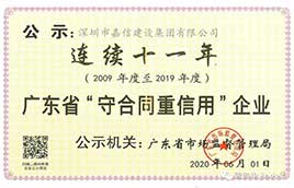 嘉信建設集團:連續十一年榮獲廣東省“守合同重信用”企業稱號