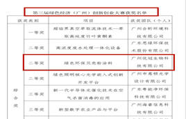 優冠生物:榮獲第三屆綠色經濟(廣州)創新創業大賽二等獎