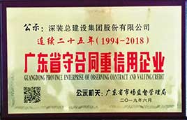 深裝總:連續二十五年獲廣東省“守合同重信用”企業稱號