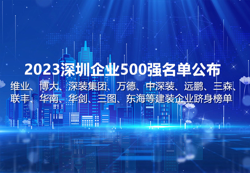 2023深圳企業500強名單公布,維業、博大、深裝集團、萬德、中深裝、遠鵬、三森、聯豐、華南、華劍、三圖、東海等建裝企業躋身榜單