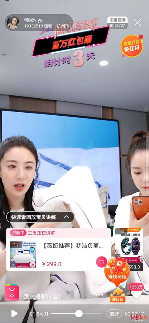 ??根據(jù)夢潔股份披露的公告,公司與薇婭所在的謙尋(杭州)文化傳媒有限公司(下稱謙尋文化)旗下主播“薇婭”共合作7次,其中2019年合作直播銷售公司產(chǎn)品3次,累計(jì)銷售金額469萬元。2020年,薇婭直播銷售公司產(chǎn)品共4次,5月18日的銷售成果因結(jié)算周期原因暫未結(jié)算,其他3次累計(jì)銷售金額為812.12萬,占公司2019年?duì)I收的0.31%。同時,夢潔股份支付的費(fèi)用為213萬,實(shí)際收入僅為600萬元不到。