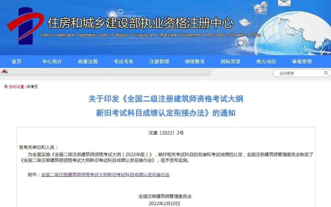 為全面實(shí)施《全國二級注冊建筑師資格考試大綱(2022年版)》,做好相關(guān)考試科目的銜接和考試成績的認(rèn)定,全國注冊建筑師管理委員會還印發(fā)了《全國二級注冊建筑師資格考試大綱新舊考試科目成績認(rèn)定銜接辦法》。