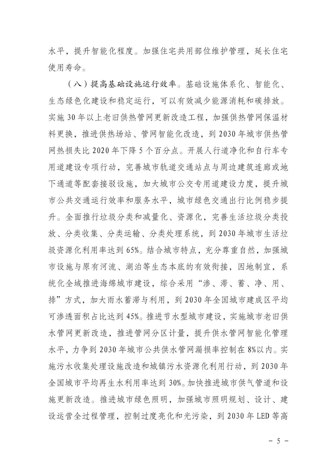 三、推進(jìn)綠色低碳建造。大力發(fā)展裝配式建筑,推廣鋼結(jié)構(gòu)住宅,到 2030 年裝配式建筑占當(dāng)年城鎮(zhèn)新建建筑的比例達(dá)到40%。推廣智能建造,到 2030 年培育100個(gè)智能建造產(chǎn)業(yè)基地,打造一批建筑產(chǎn)業(yè)互聯(lián)網(wǎng)平臺(tái),形成一系列建筑機(jī)器人標(biāo)志性產(chǎn)品。推廣建筑材料工廠化精準(zhǔn)加工、精細(xì)化管理,到2030年施工現(xiàn)場(chǎng)建筑材料損耗率比2020年下降20%。加強(qiáng)施工現(xiàn)場(chǎng)建筑垃圾管控,到 2030年新建建筑施工現(xiàn)場(chǎng)建筑垃圾排放量不高于300噸/萬(wàn)平方米。積極推廣節(jié)能型施工設(shè)備,監(jiān)控重點(diǎn)設(shè)備耗能,對(duì)多臺(tái)同類設(shè)備實(shí)施群控管理。優(yōu)先選用獲得綠色建材認(rèn)證標(biāo)識(shí)的建材產(chǎn)品,建立政府工程采購(gòu)綠色建材機(jī)制,到2030年星級(jí)綠色建筑全面推廣綠色建材。鼓勵(lì)有條件的地區(qū)使用木竹建材。提高預(yù)制構(gòu)件和部品部件通用性,推廣標(biāo)準(zhǔn)化、少規(guī)格、多組合設(shè)計(jì)。推進(jìn)建筑垃圾集中處理、分級(jí)利用,到2030年建筑垃圾資源化利用率達(dá)到55%。