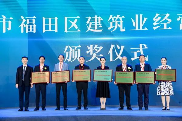 深圳市博大建設集團有限公司、深圳市建筑裝飾(集團)有限公司、深圳市嘉信建設集團有限公司、深圳中壹建設(集團)有限公司、深圳市中深建裝飾設計工程有限公司、深圳市華晟建設集團股份有限公司、深圳市建設(集團)有限公司七家企業榮獲深圳市福田區建筑業經營貢獻獎。