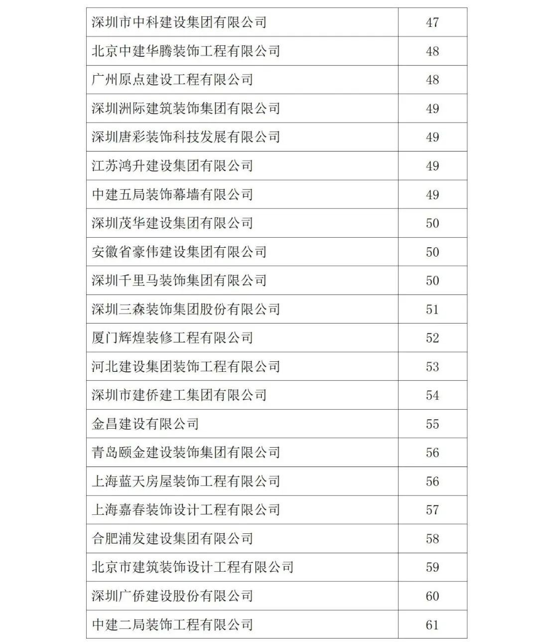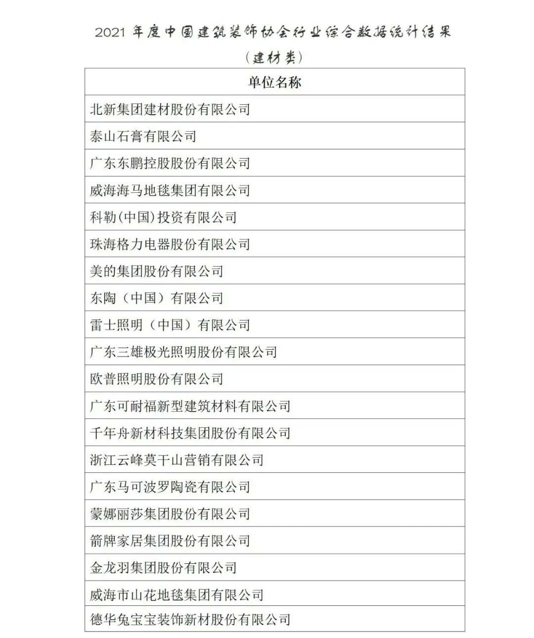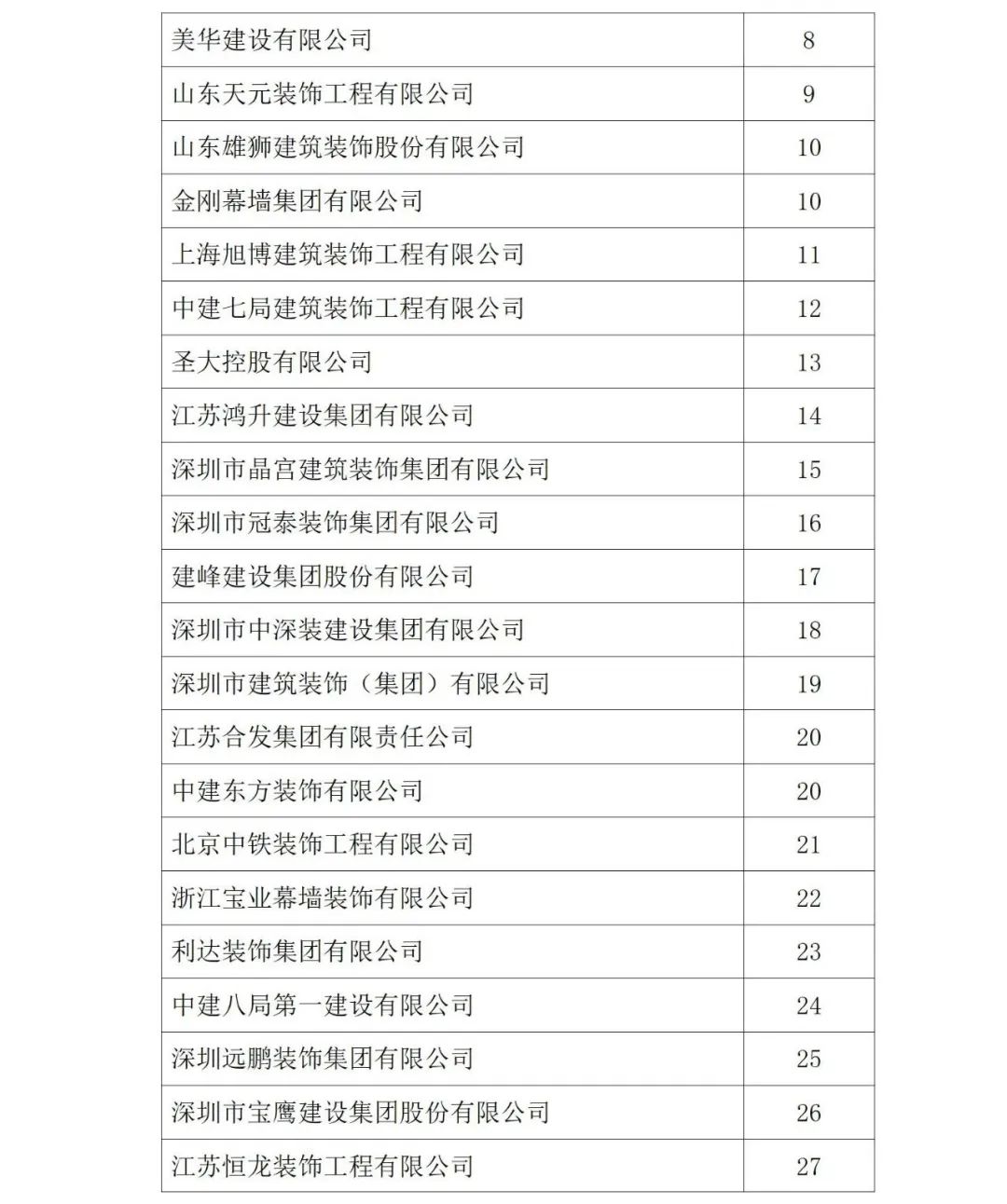 2021年度行業(yè)綜合數(shù)據(jù)統(tǒng)計分為裝飾、幕墻、設計、建材四類,現(xiàn)將2021年度建筑裝飾行業(yè)數(shù)據(jù)統(tǒng)計結果名單予以公告。