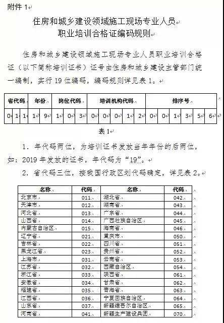 1.住房和城鄉(xiāng)建設領域施工現(xiàn)場專業(yè)人員職業(yè)培訓合格證編碼規(guī)則