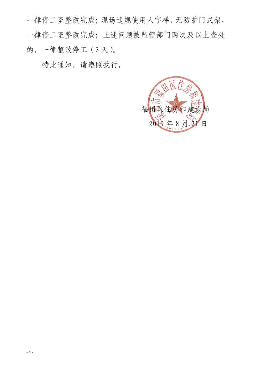 核心提示:8月21日,深圳市福田區住房和城鄉建設局發布了關于嚴格執行建筑施工“十必查、十停工”相關規定的通知,通知強調,各施工單位要以最高要求、最強力量、最實措施、最大力度做好安全事故防范,問題嚴重者一律停工整改至完成。