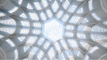 北京大興國際機場的屋頂中心由一個六邊形天窗、六條條形天窗、八個氣泡窗相互連接,組成頂部主要自然采光體系,可以讓室內自然光采光面積超過60%。
