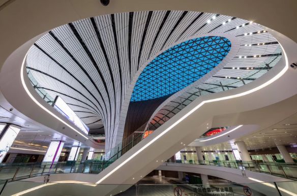 整個航站樓的正下方,你可以快速換乘京霸高鐵、廊涿城際、新機場快軌等,這是世界首座高鐵下穿的航站樓。
