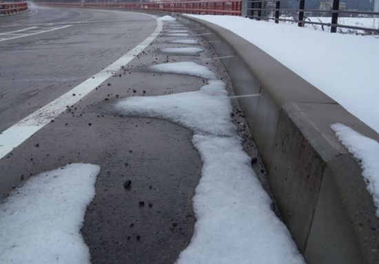 現在如果出現大雪天氣,地上積雪來不及清除,會導致機場暫時關閉。而在新機場未來的四條跑道中,將有一條采用自融雪技術,可以實現即使冬天下大雪,也不用關閉機場。通往機場的高速公路也值得一提,高速全線大面積采用了融冰雪材料,可以把結冰點降到零下12℃左右。在一個項目如此大范圍地采用,自融冰雪路面技術在國內尚屬首例。