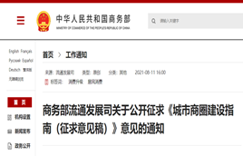為適應城市高質量發展和消費升級需要,更好指導城市商圈建設,構建多層級城市商業體系,提升居民消費品質,商務部近日發布《城市商圈建設指南(征求意見稿)》,意見征求截止日期為2021年8月17日。