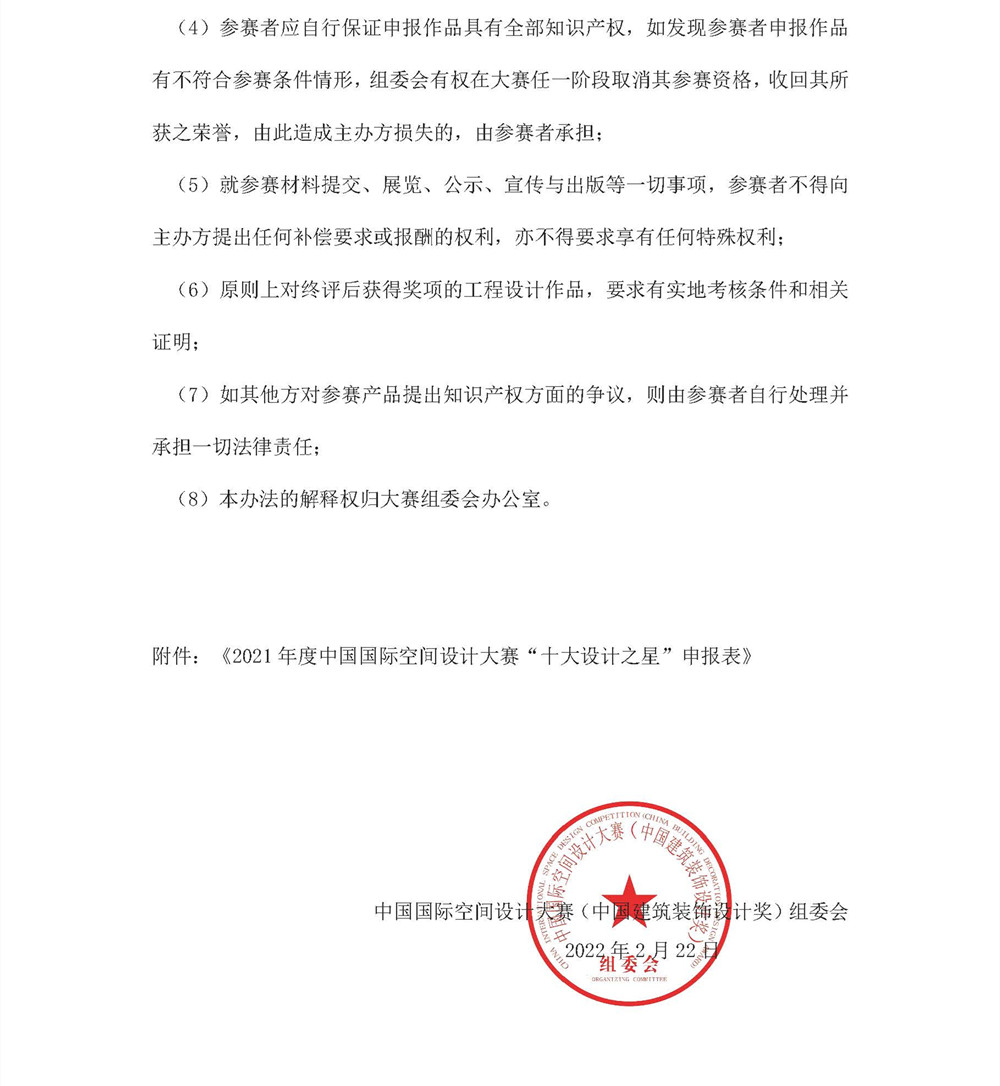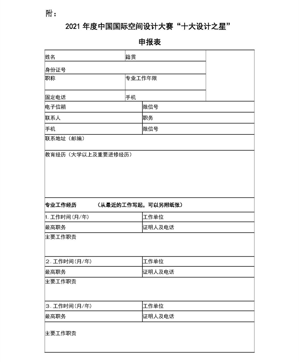 關于2021年度中國國際空間設計大賽“十大設計之星” 申報說明